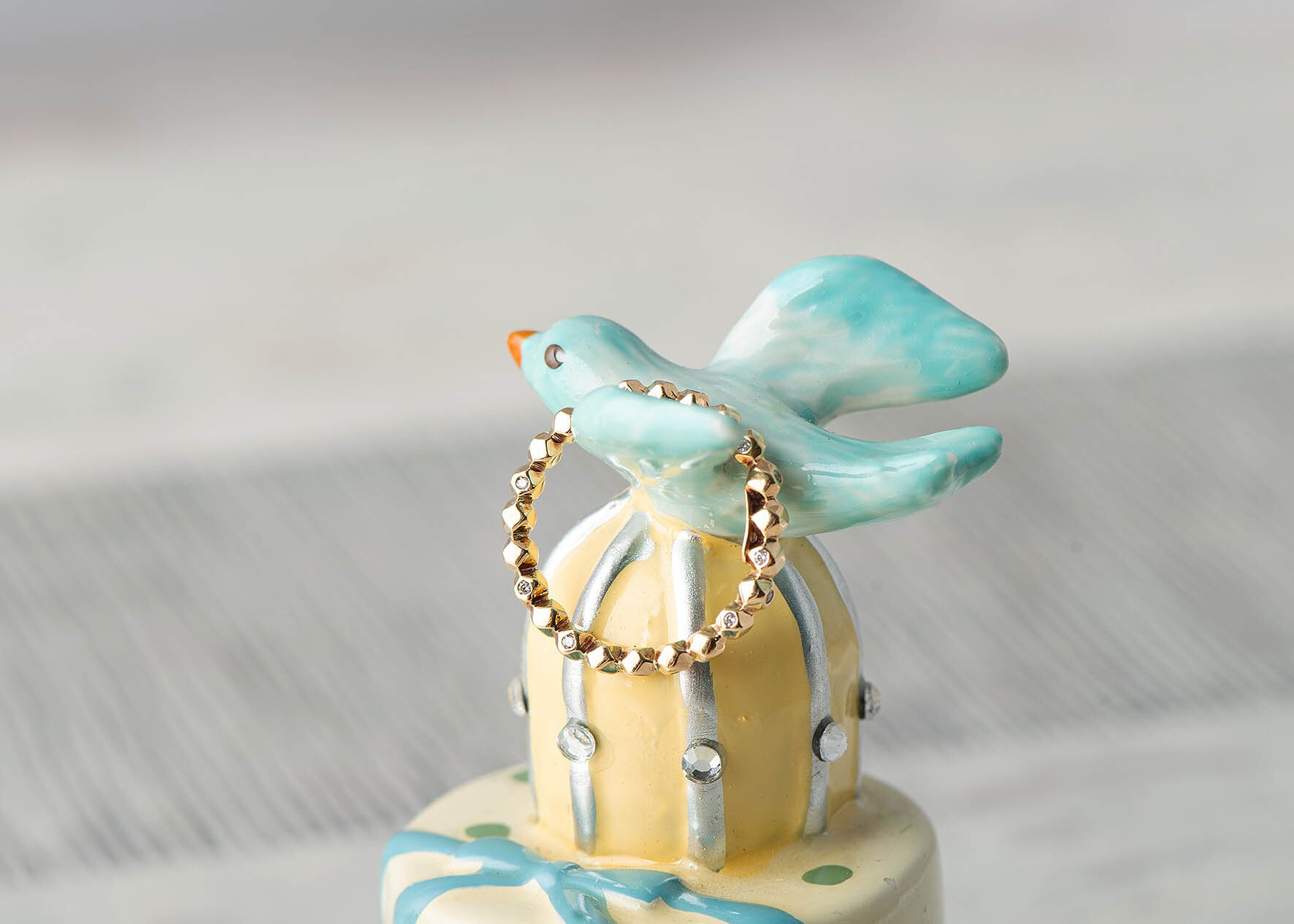小さな小石を連ねたような、遊び心のあるデザインが魅力のリング。