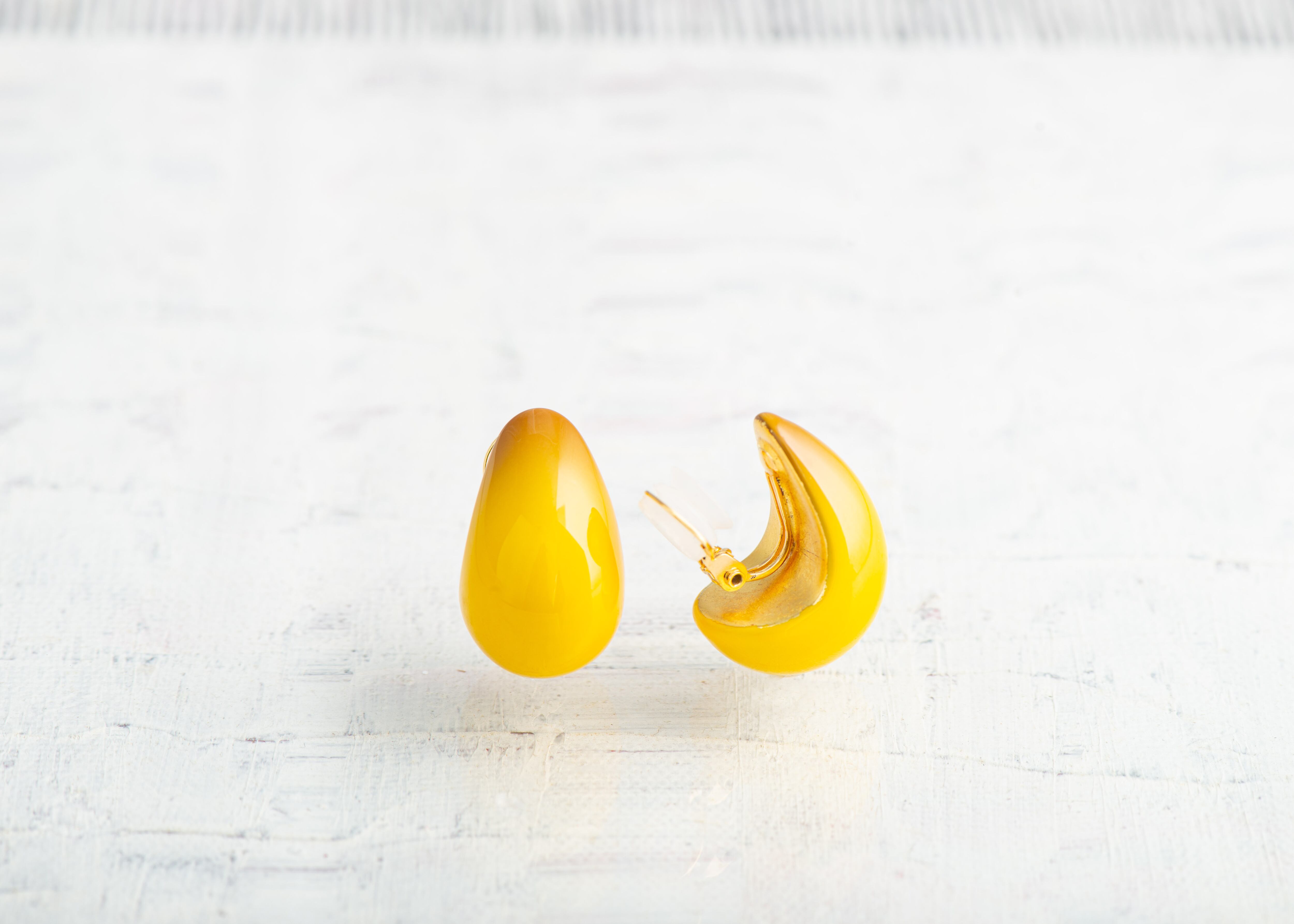 少し大きく見えますが、お耳を包むように着けますのでどなたにもほど良いボリューム感を楽しんでいただけます。ショートヘアやアップスタイルなど耳元が見えやすいヘアスタイルの時にチラッと見える金箔がお洒落です。